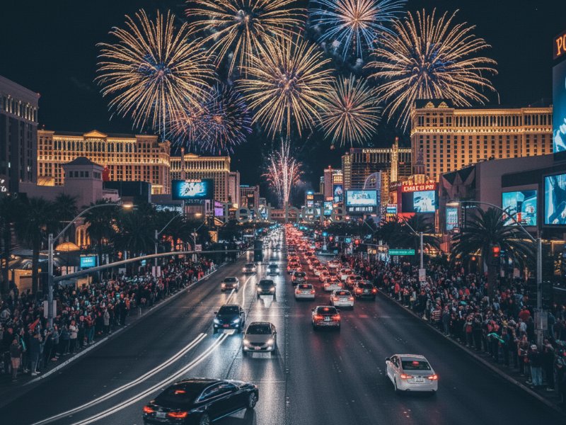 Avoid driving on Las Vegas Blvd, Flamingo, Sahara, and Charleston, as these corridors are high-risk every New Year’s. If you need to drive at some point during the night, try to avoid the 10 PM–4 AM window when congestion, impaired drivers, and post-event traffic are at their peak. You can still enjoy the full New Year’s experience, just plan your movements so you’re not on the road during the most chaotic hours.